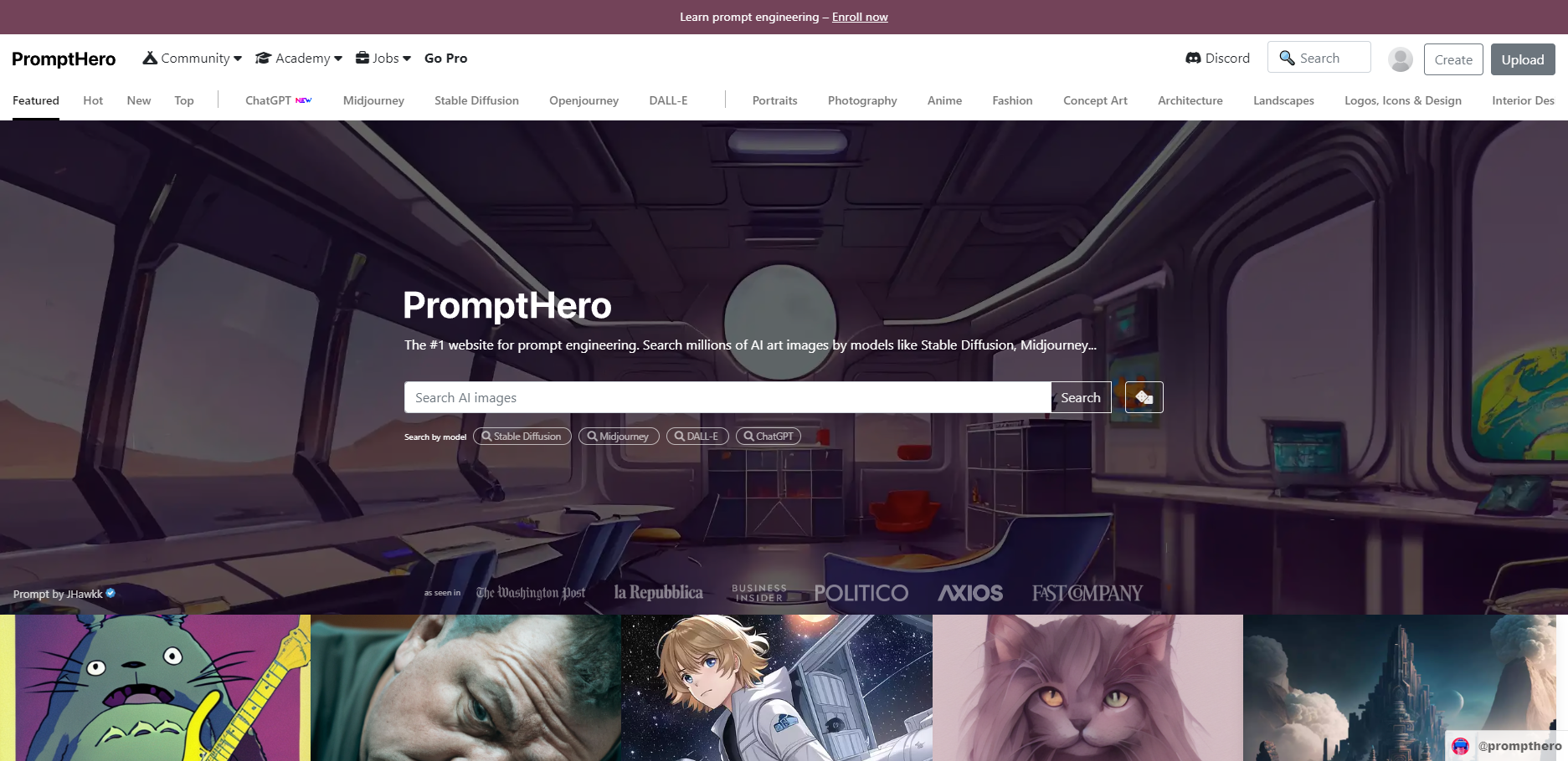 PromptHero.com은 텍스트 생성에서 이미지 및 비디오 생성에 이르기까지 광범위한 생성 AI 서비스를 제공하는 플랫폼입니다. 작가, 마케터, 콘텐츠 크리에이터 등 누구나 유용하게 활용할 수 있을 것 같습니다.